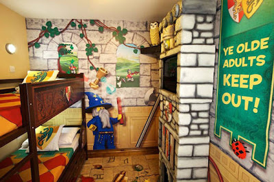 Setiap ruang kamarnya juga didesain berbeda. Ada tiga tema untuk kamar yang disedikan, yakni, Pirate (bernuansa bajak laut), Adventure (nuansa petualangan), dan Kingdom bernuansa kerajaan.Ada lebih dari 3.400 model Lego diyang diciptakan untuk desain hotel tersebut. Dan unuk membangun hotel ini, lebih dari tiga juta batu bata Lego dibutuhkan. Mulai dari bentuk karakter serangga, kupu-kupu dan tikus untuk karakter Lego besar yang benar-benar terbuat dari batu bata Lego.